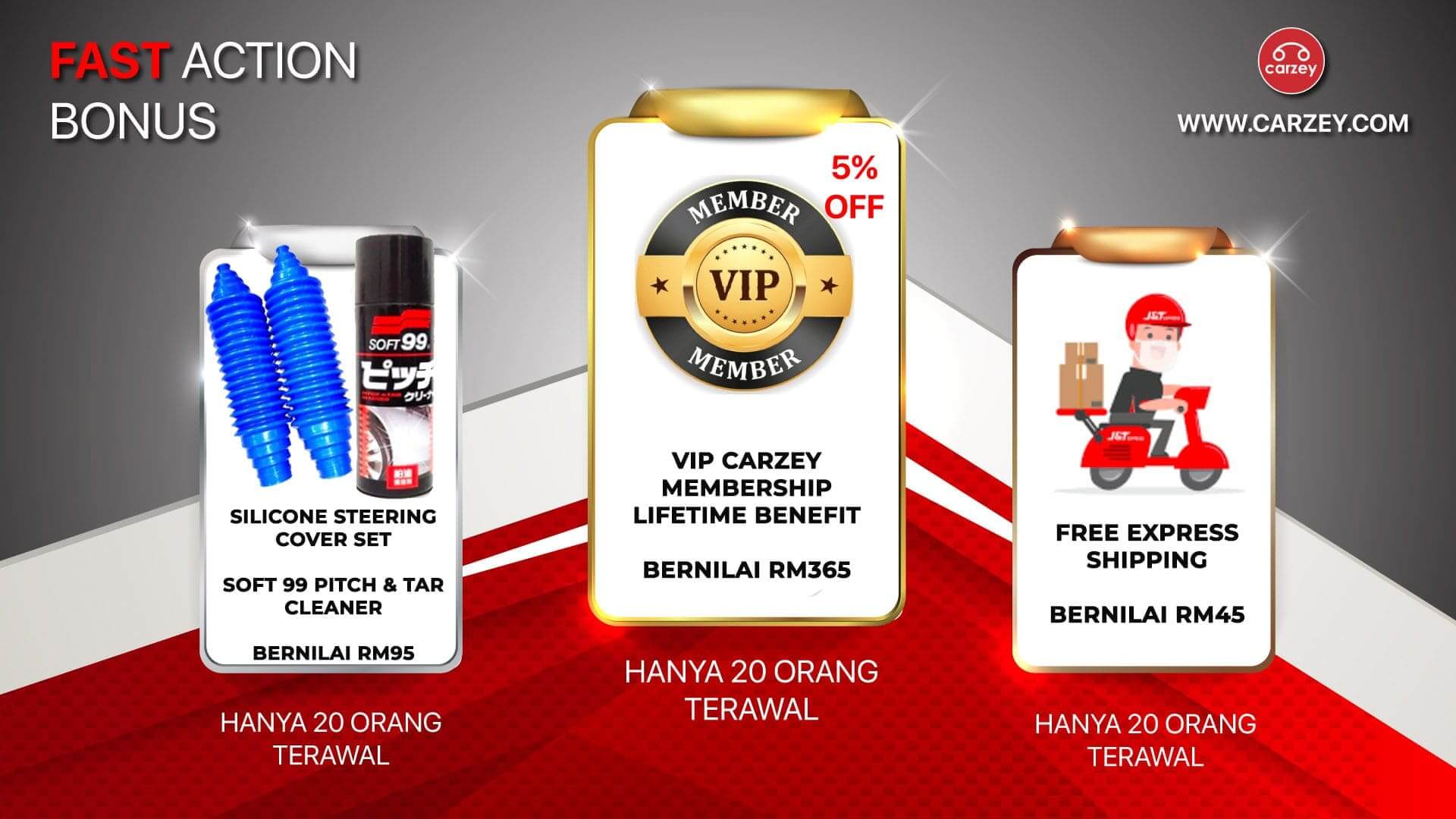 Jika anda order sebelum jam 12 malam ini kami akan beri 4 FAST ACTION BONUS bernilai RM500 secara PERCUMA!