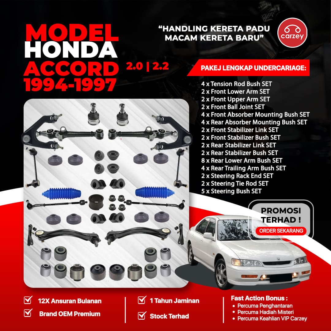 Set handling padu ini disarankan untuk kereta berusia lebih 7 tahun dan set ini terbukti dapat membantu untuk selesaikan masalah handling secara menyeluruh seperti masalah bunyi ketika jalan tak rata, steering meliar – liar ke tepi, tayar makan sebelah dan tingkatkan handling kereta anda agar dapat menikmati pengalaman baru dalam pemanduan. Stabil, selesa & selamat. Pilihan alat ganti terbaik untuk menjamin kualiti dan ketahanan agar pelaburan anda hari ini berbaloi untuk 10 tahun akan datang. Jika anda ingin rasakan perbezaan dalam pemanduan, ini adalah set yang terbaik untuk anda. Dapatkan hari ini sementara stock masih ada.