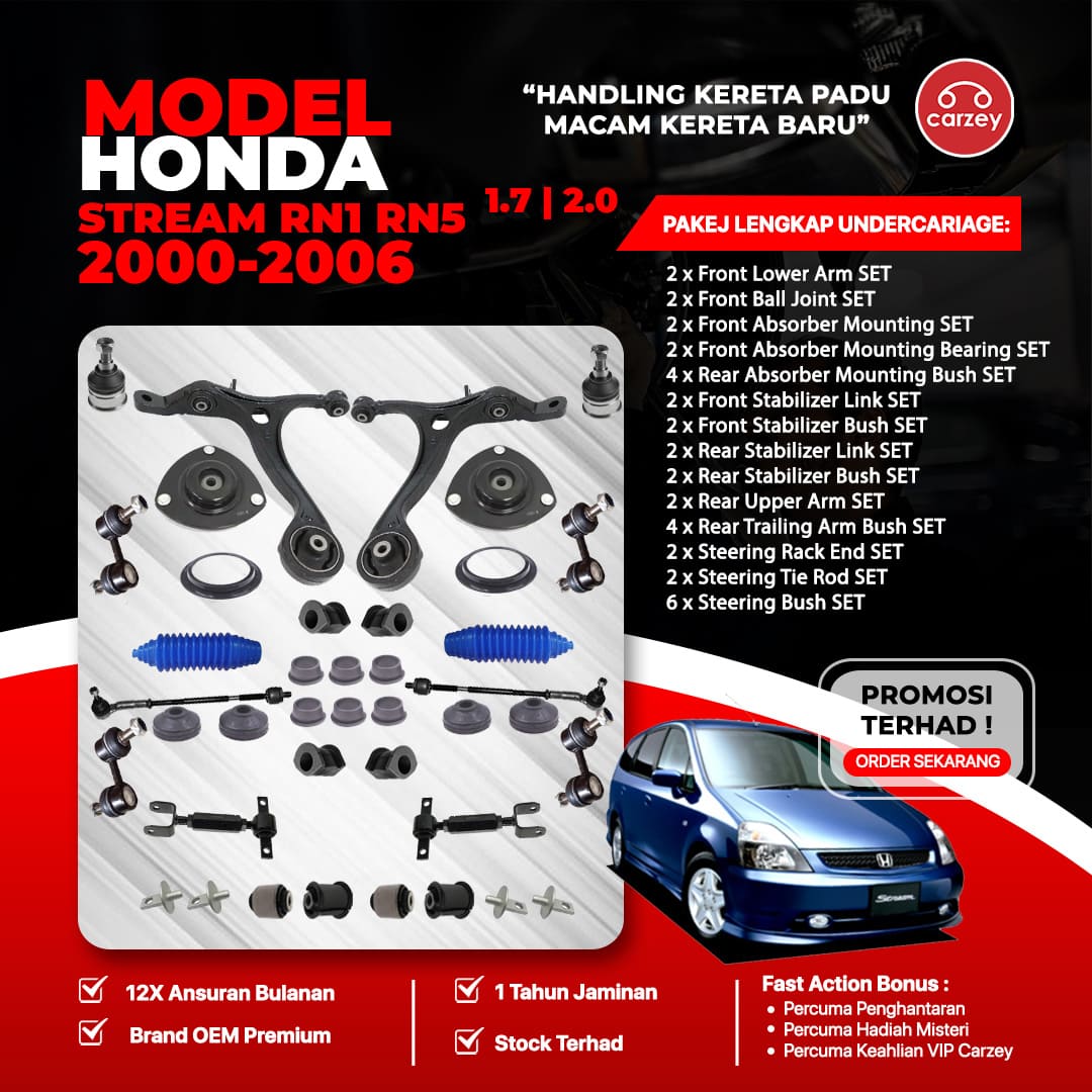 ![[COMBO DEAL] HONDA STREAM RN1 RN5 RESTORATION SUSPENSION PACKAGE SET 36 IN 1 + FREEGIFT + BONUS](https://carzey.com/wp-content/uploads/2024/10/Honda-Stream-RN1-RN5-36pcs-RM2450.jpg)