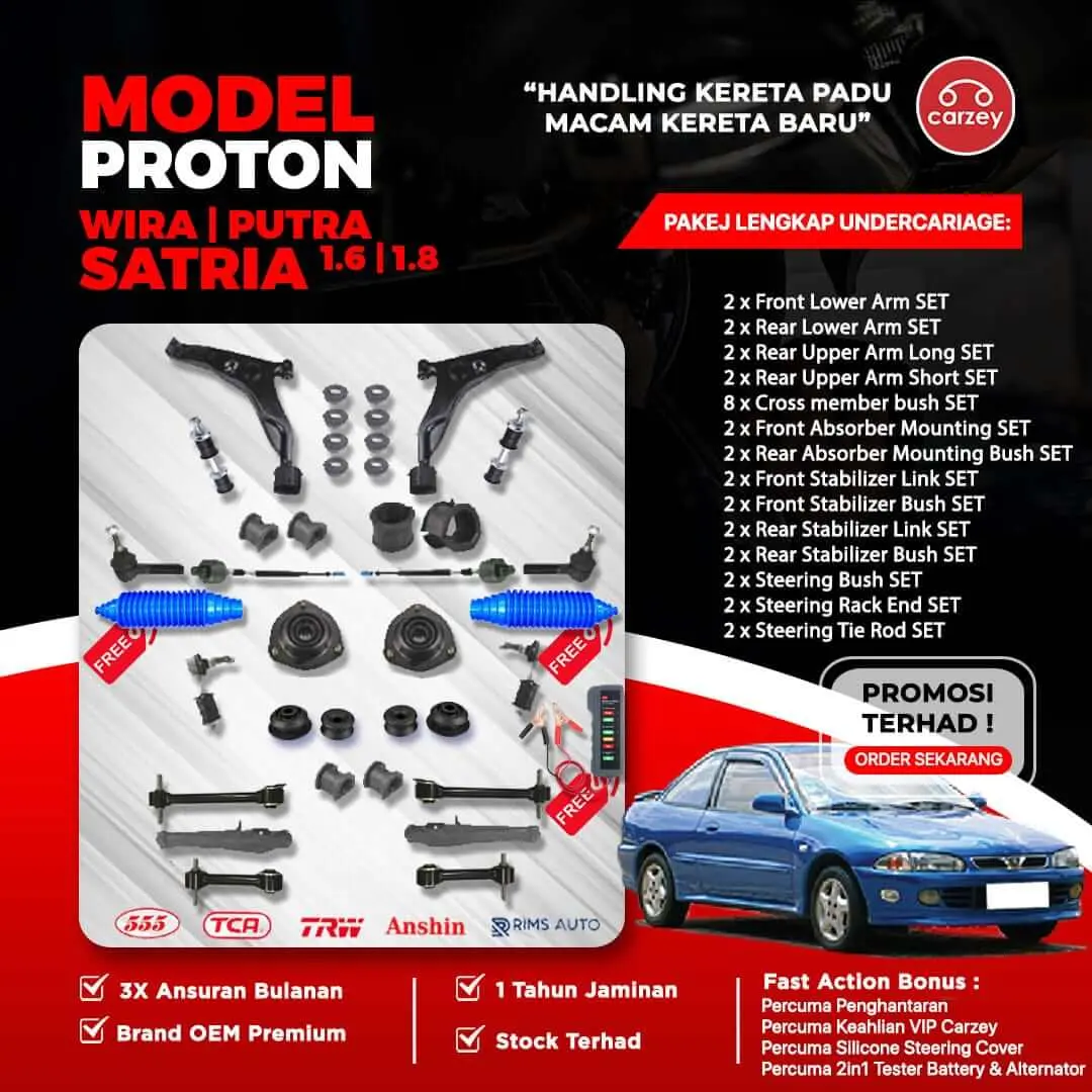 ![[COMBO DEAL] PROTON WIRA , SATRIA 1.6 ,1.8 PUTRA RESTORATION SUSPENSION PACKAGE SET 34 IN 1 + FREEGIFT + BONUS](https://carzey.com/wp-content/uploads/2020/02/Combo-deal-P-Wira-1.8-min-1.webp)
